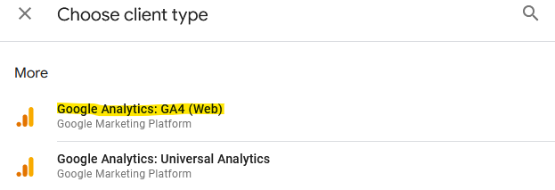 <figure><img src="https://990040211-files.gitbook.io/~/files/v0/b/gitbook-x-prod.appspot.com/o/spaces%2FBXjLZzseZBBJBcPHmAEg%2Fuploads%2FpadWm5OlQu38ACcUCIZv%2Fimage.png?alt=media&#x26;token=64a72f08-cc1b-4a5c-b29a-ce4bb4a92958" alt=""><figcaption><p>Client "GA4"</p></figcaption></figure>